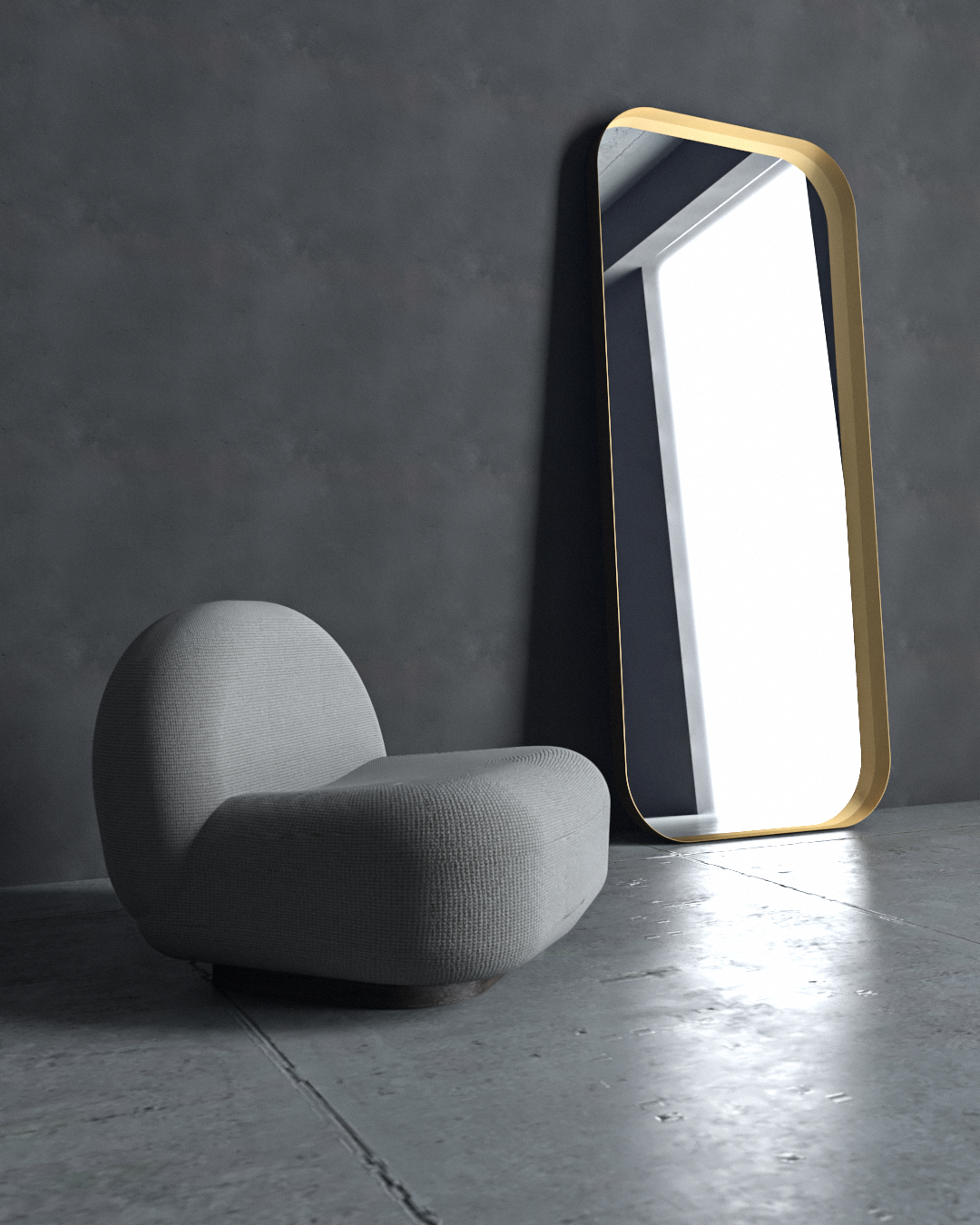 Καθρέφτης κρεμαστός ή επιδαπέδιος Iron Floor Curved με μεταλλική περιμετρική λάμα και φωτισμό LED