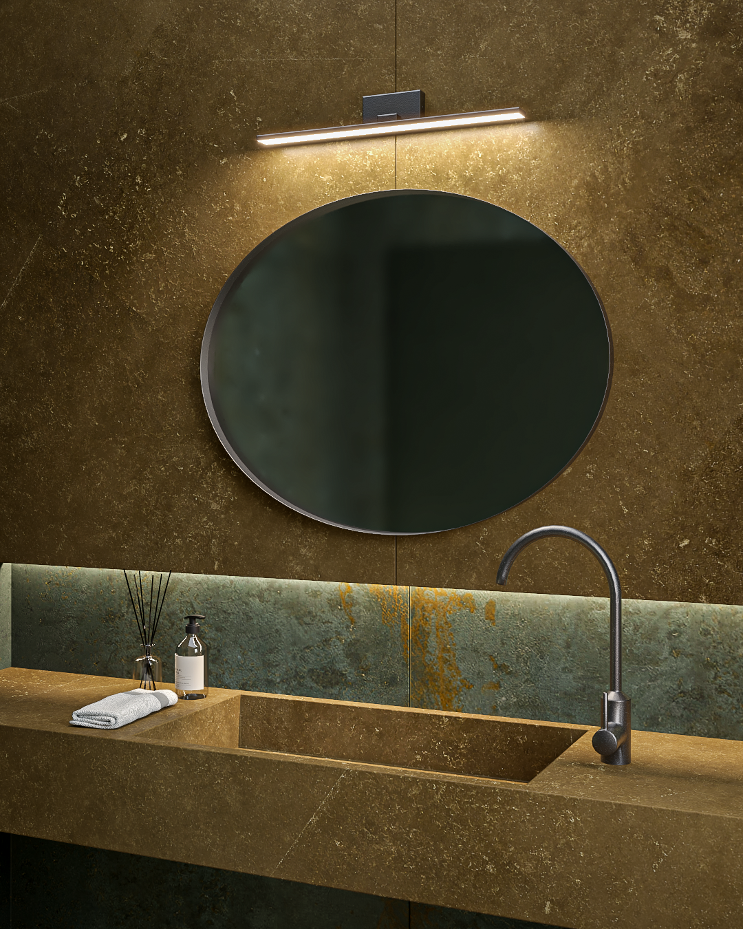 Καθρέφτης κρεμαστός Iron Oval με μεταλλική περιμετρική λάμα με φωτισμό LED.